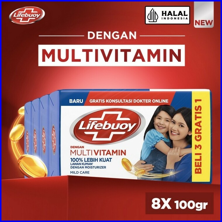 Lifebuoy Perlindungan Kulit Maksimal Sabun Batang Mild Care 4x100 G X2