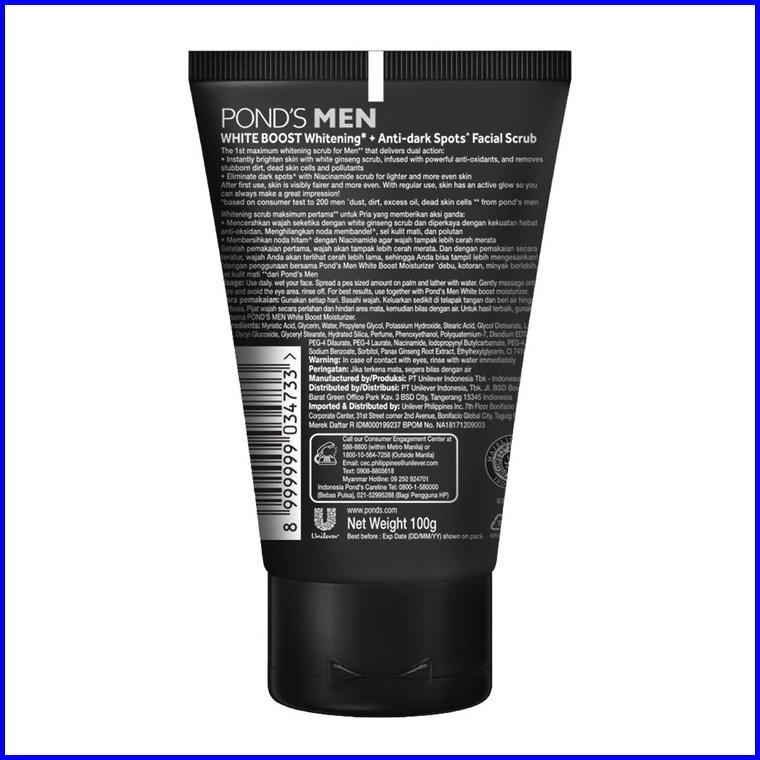 Ponds Men Sabun Cuci Muka Pembersih Wajah Pria Bright Boost With Niacinamide 100g X2