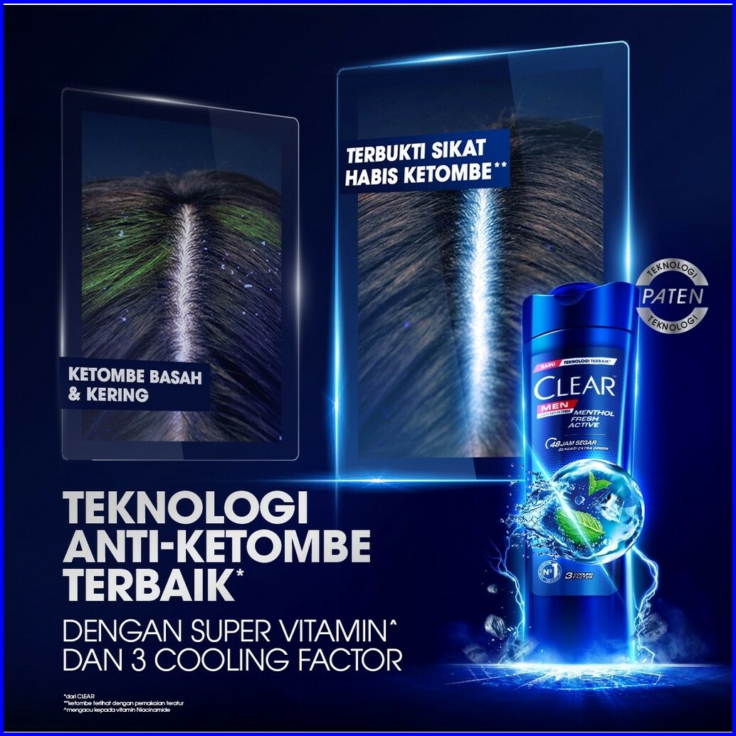 Clear Men Shampoo Anti Ketombe Menthol Fresh Active Dengan 3 Cooling Factor Untuk Kesegaran Hingga 48 Jam Serta Sensasi