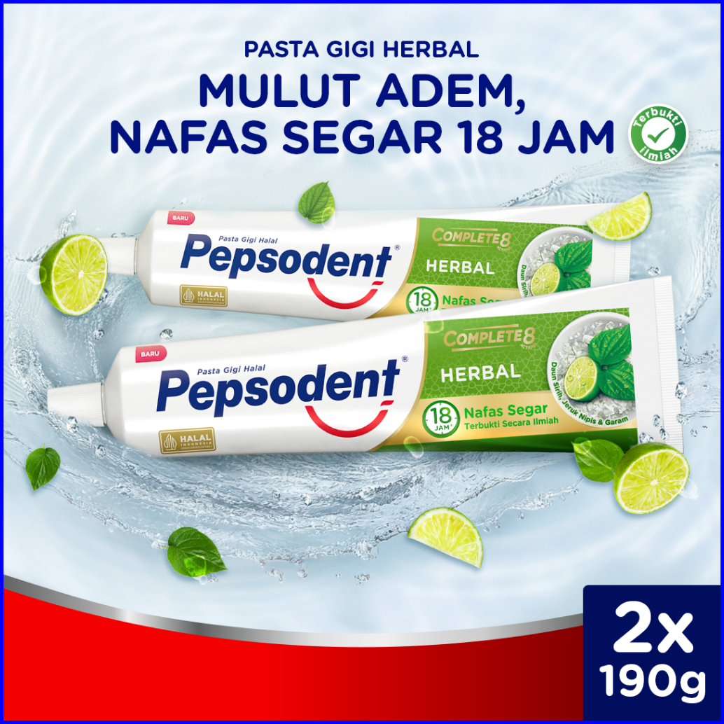 Pepsodent Action 123 Pasta Gigi Herbal Nature Essentials Mulut Adem Nafas Segar 190g X2