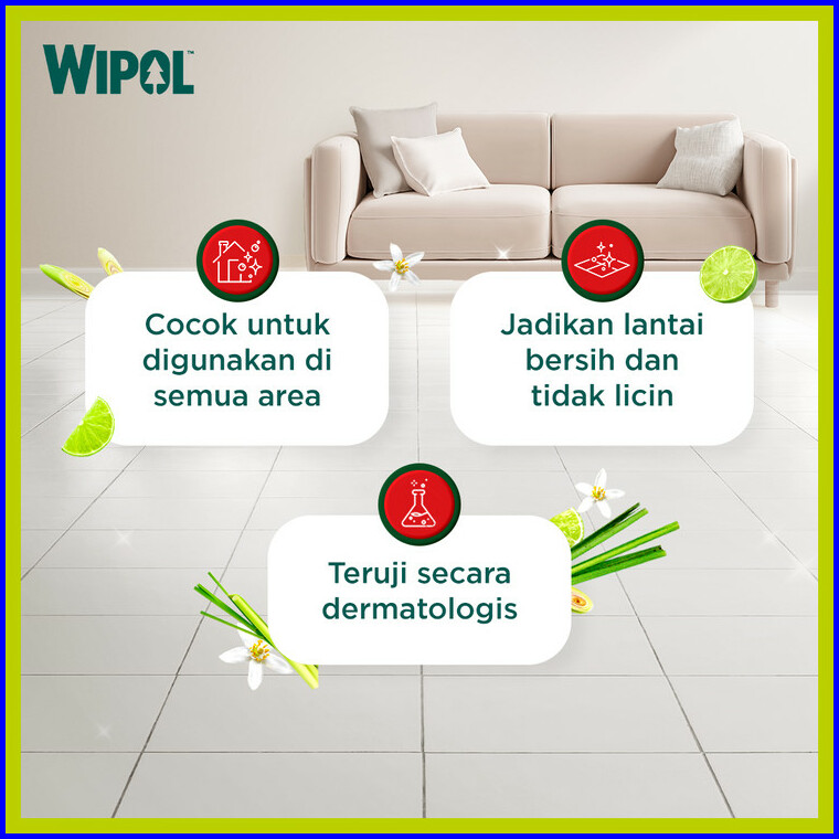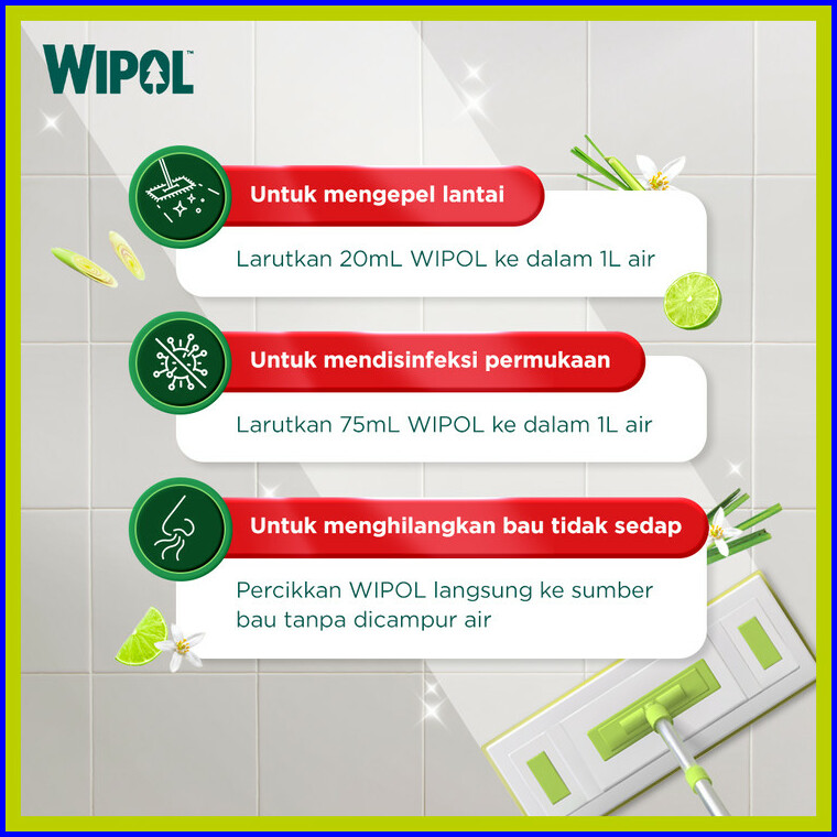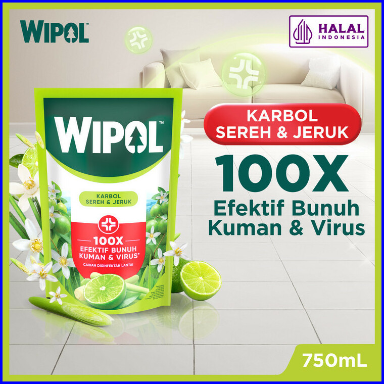 Wipol Pembersih Lantai Cairan Disinfektan Teruji Dermatologis Sereh Jeruk 750ml