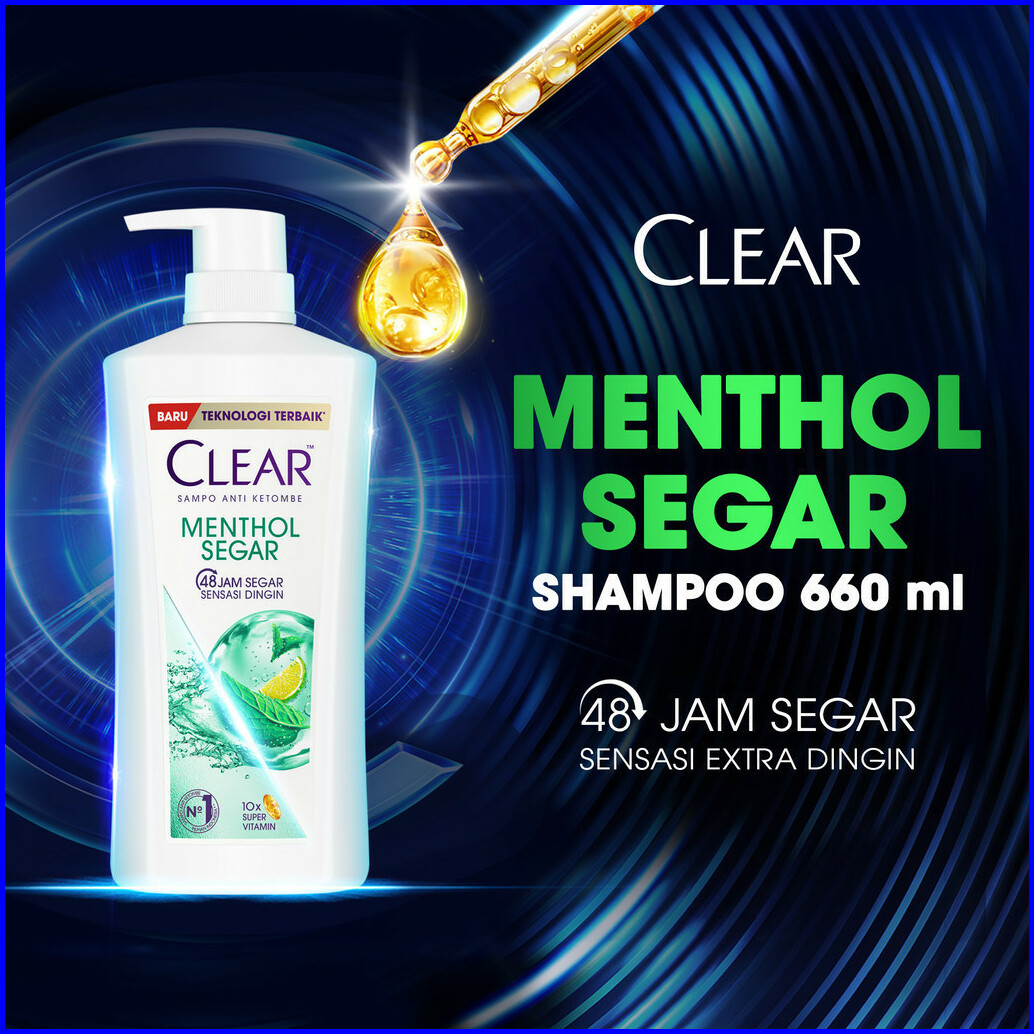 Clear Shampoo Anti Ketombe Menthol Segar 48 Jam Segar Sensasi Dingin Dengan 10x Super Vitamin - 660ml