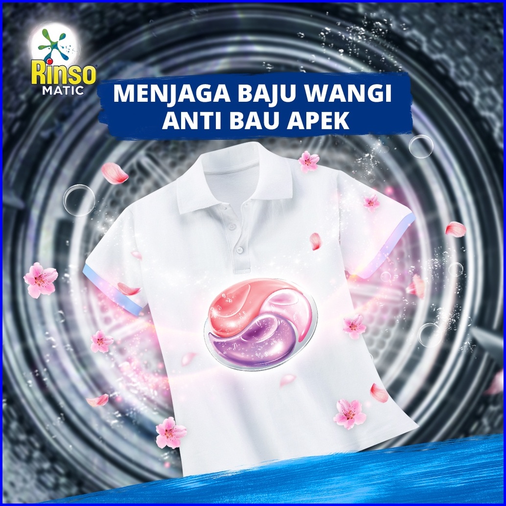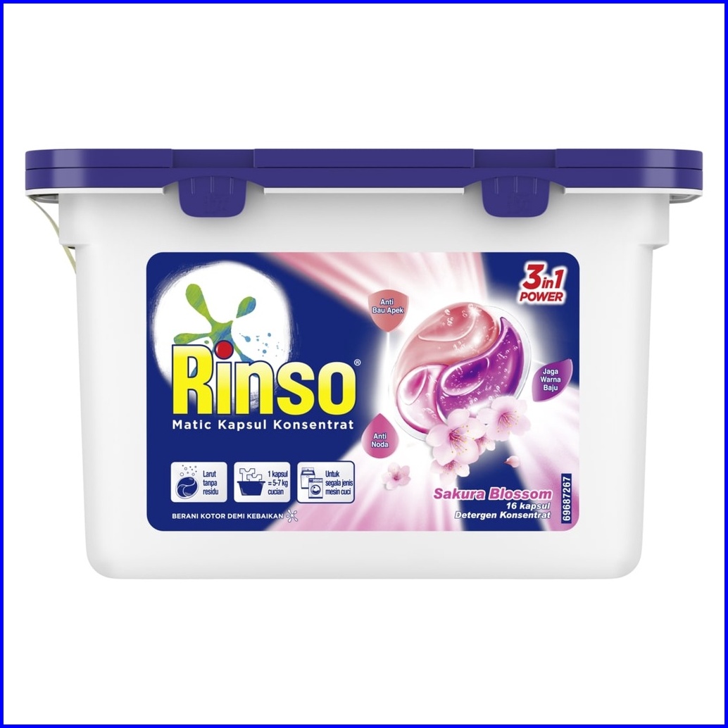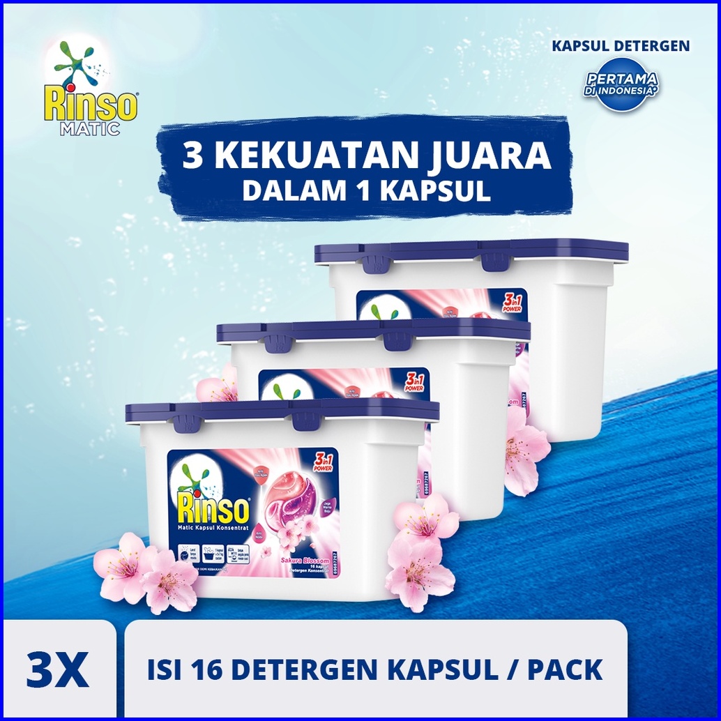 Rinso Detergent Cair Capsule Konsentrat Deterjen Matic Kapsul Sakura Blossom 168 G X3