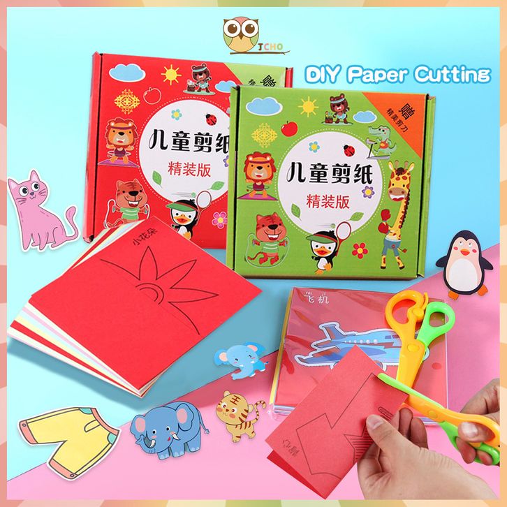 JCHO Mainan Gunting Kertas Anak Mainan Edukasi Anak Diy Paper Cutting Aktivitas