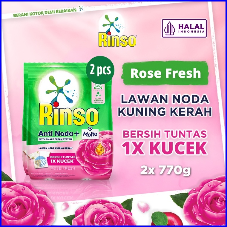 Rinso Molto Detergent Bubuk Deterjen Anti Noda Rose Fresh 770 G X2