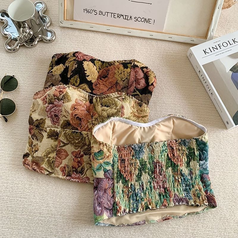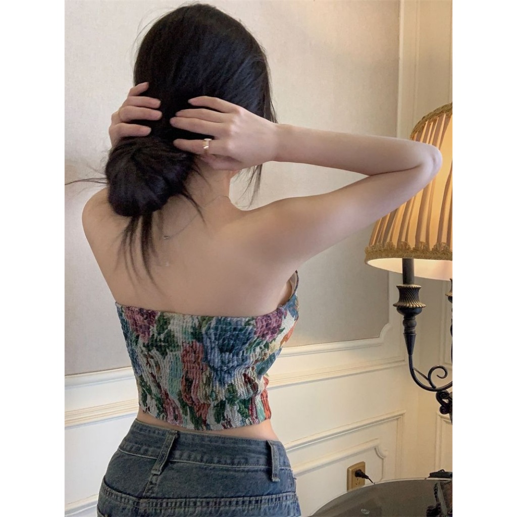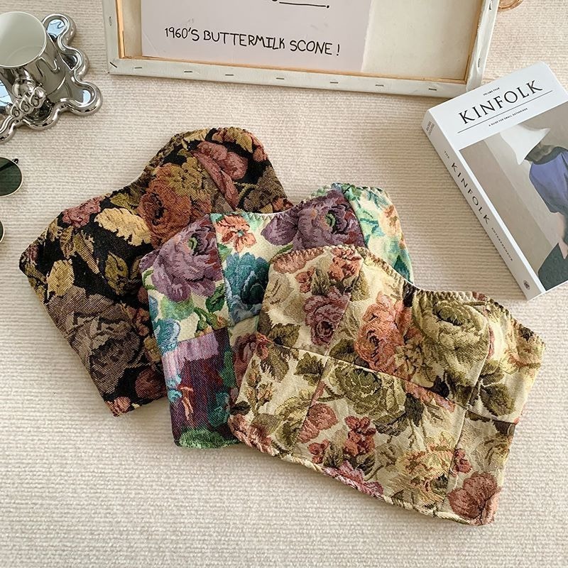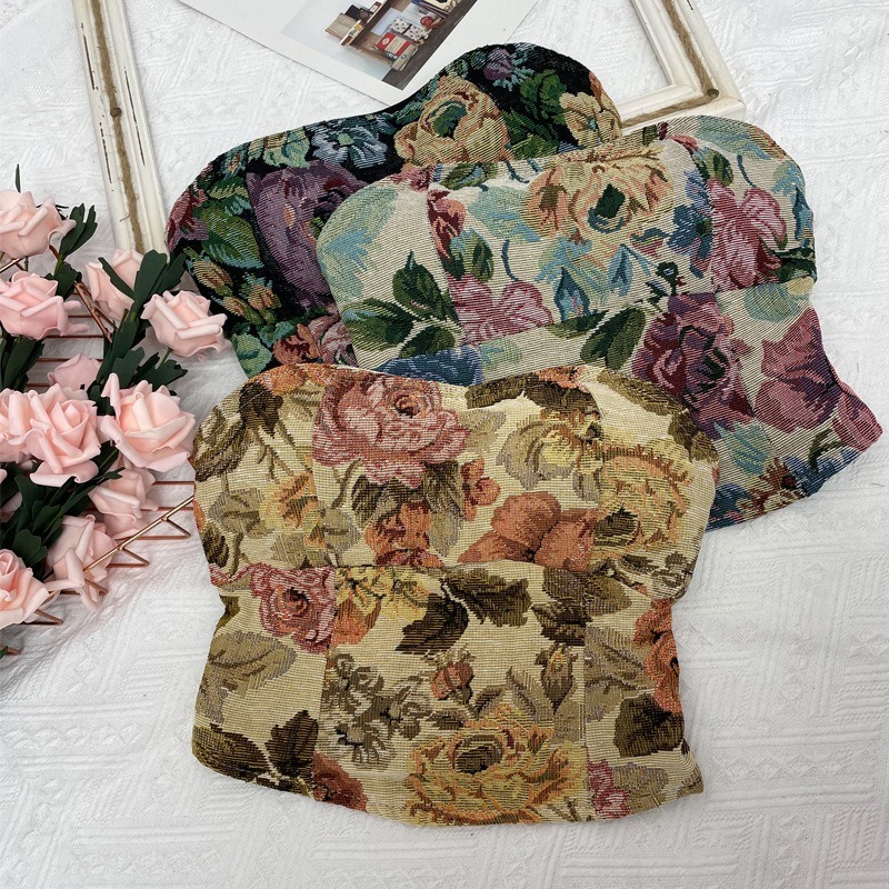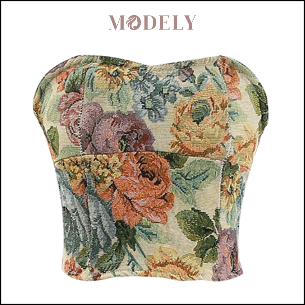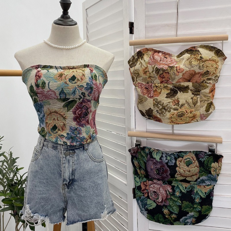 ELY - Top Vintage Floral Premium Sabrina Kemben Lace Vest V-Neck Crop Top Slim Fit BR205