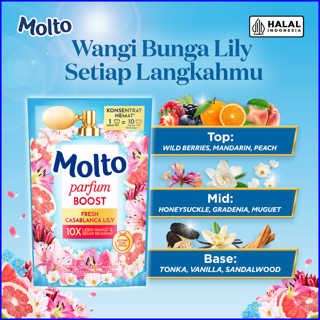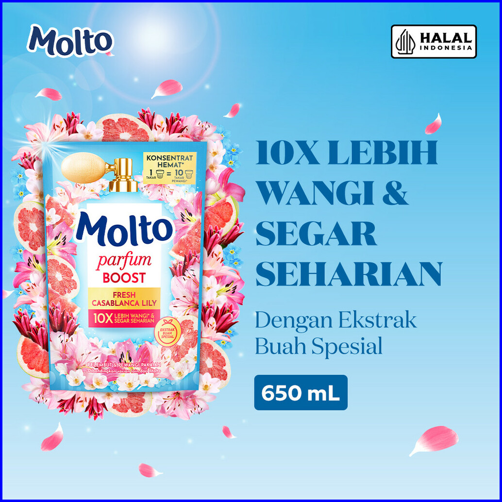 Molto Pelembut Pewangi Pakaian Softener Konsentrat Parfum Boost Casablanca Lily 650 Ml