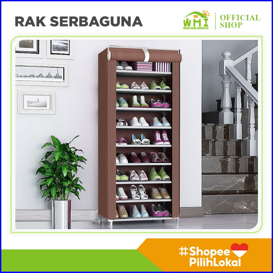 World Home Rak Sepatu Kain 10 Susun Rak Penyimpanan Sepatu Serbaguna Rak Sepatu Kain Portable 1099