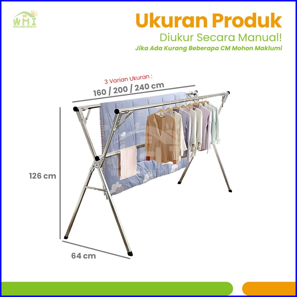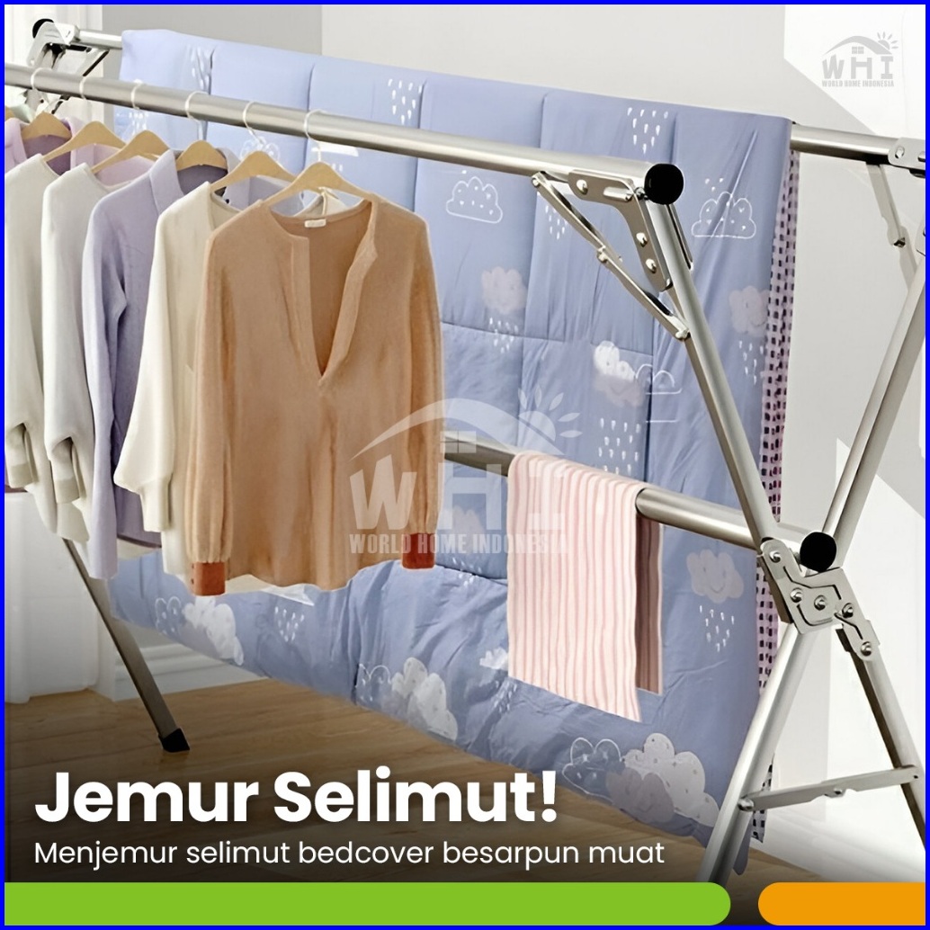 World Home Jemuran Baju Lipat Jemuran Pakaian Anti Karat Kuat Jemuran Baju Portable Jemuran Lipat