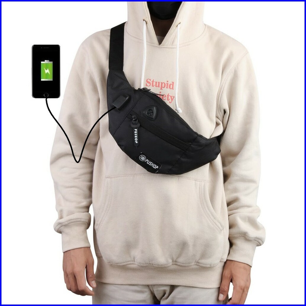 Waist Bag Usb Waterproof Pushop Rijivk Keren Premium Murah Berkualitas