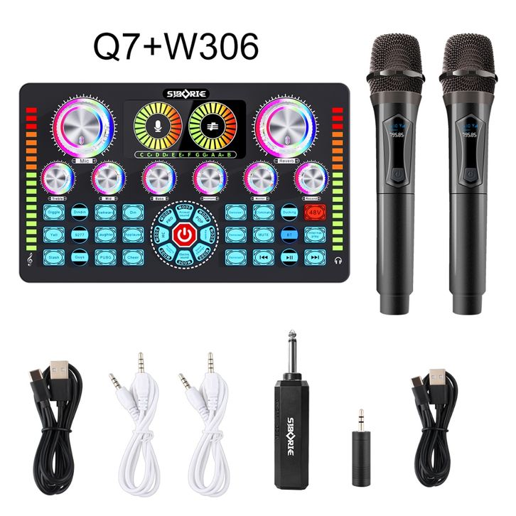 BEST Siborie【】Q7 Sound Card + W306/W369 PrOfesional Two Mic Wireless MicroPhone Karoke Mic Set 100% Original