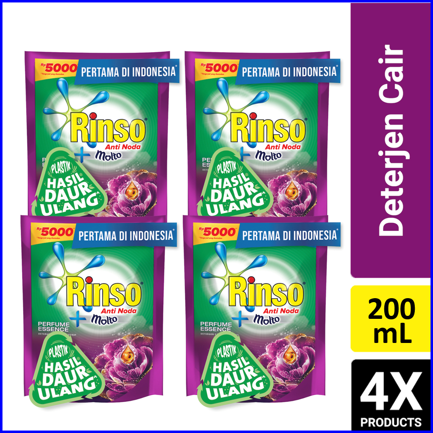 Rinso Molto Detergen Cair Kemasan Daur Ulang Perfume Essence Double Clean Fresh 200ml 4x