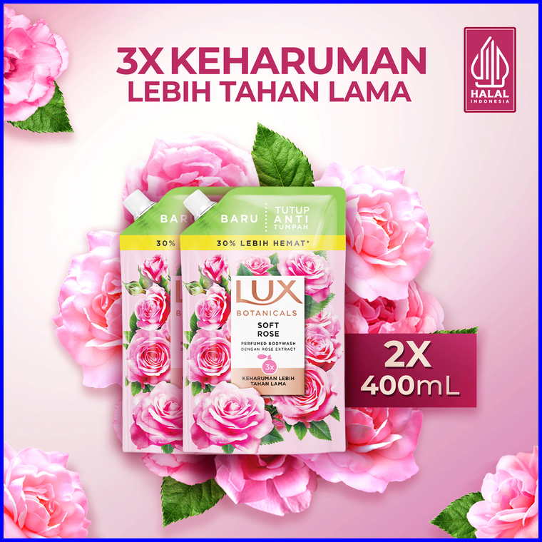 Lux Botanicals Menghaluskan Kulit Sabun Mandi Cair Soft Rose 400 Ml X2