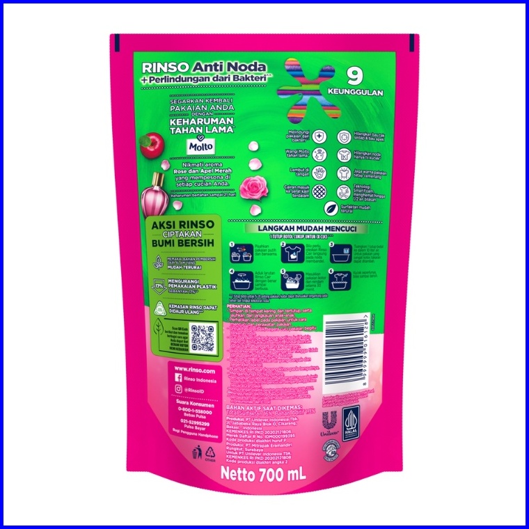 Rinso Molto Detergent Cair Deterjen Anti Noda Rose Fresh 700 Ml