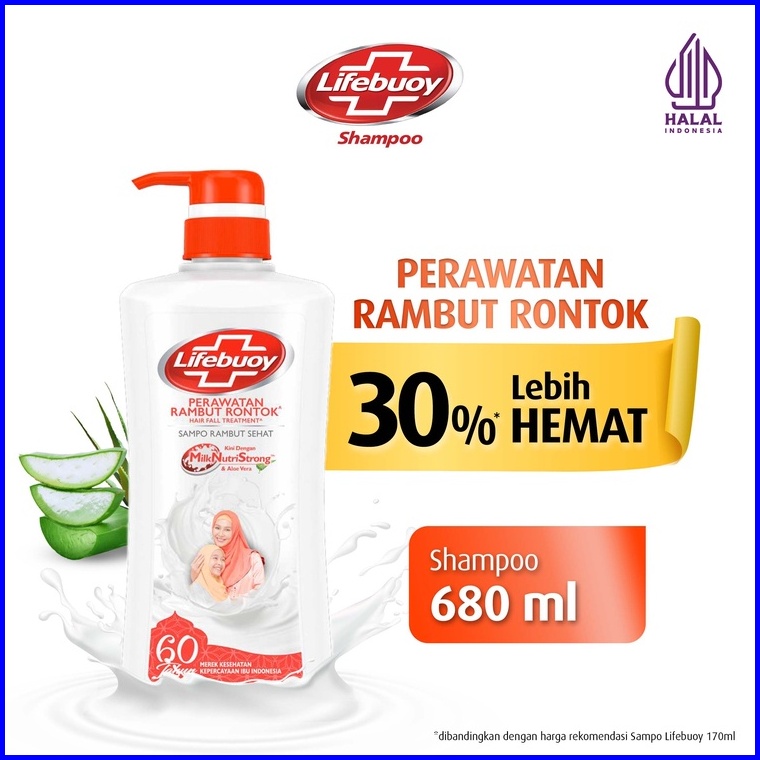 Lifebuoy Shampoo Hair Fall Perawatan Rambut Rontok 680ml Dgn Milknutristrong Aloe Vera