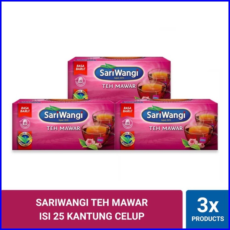 Sariwangi Teh Mawar Isi 25 Kantung Celup Triplepack