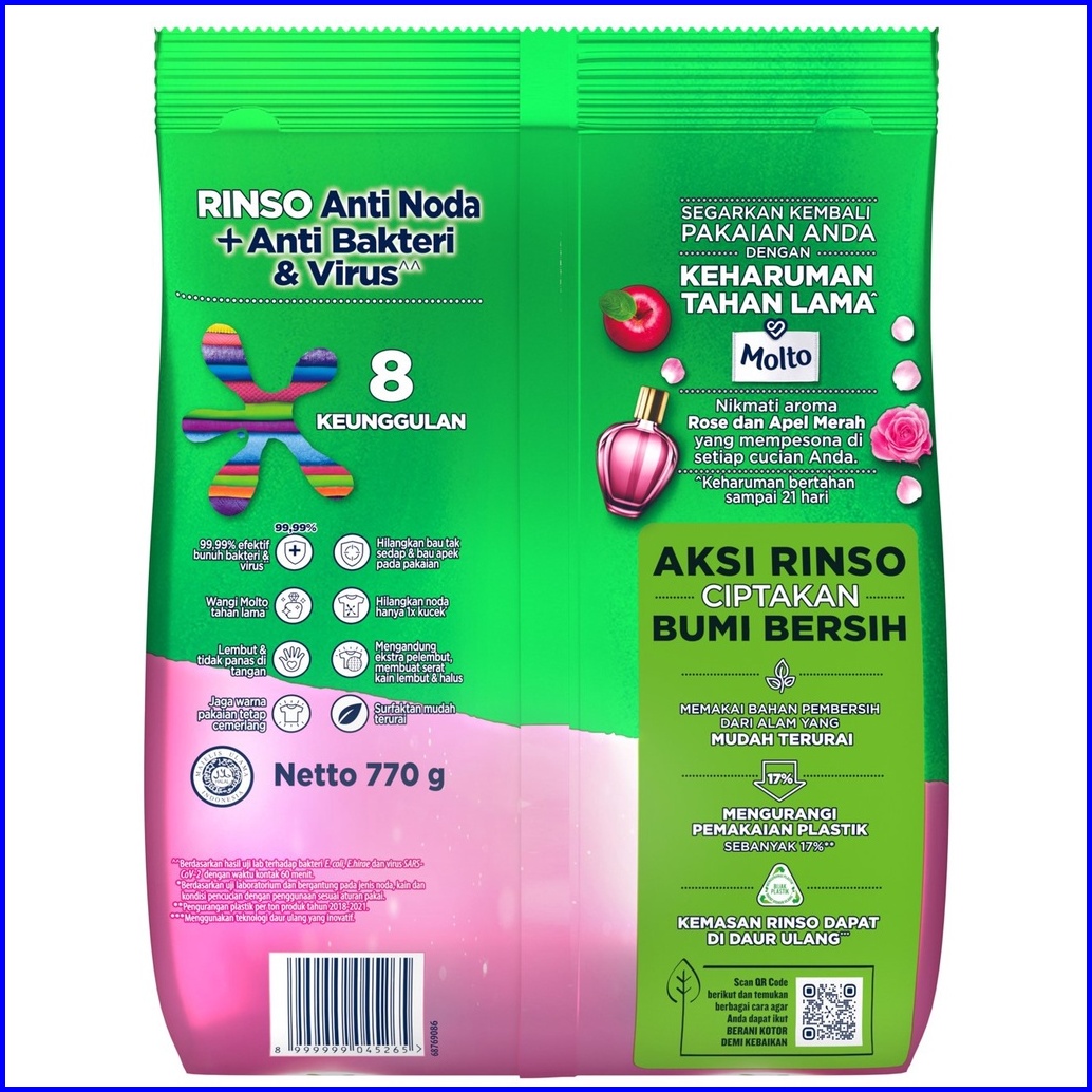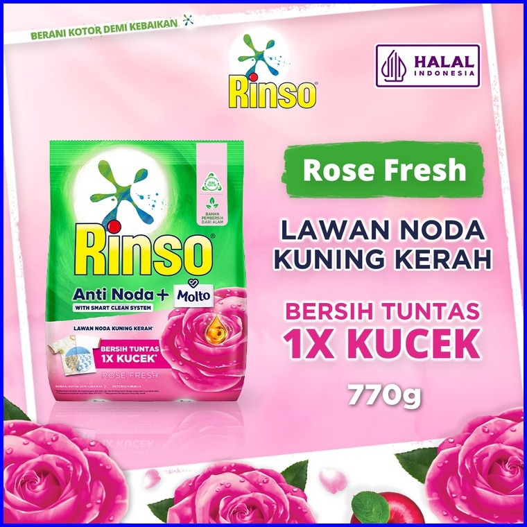 Rinso Molto Detergent Bubuk Deterjen Anti Noda Rose Fresh 770 G