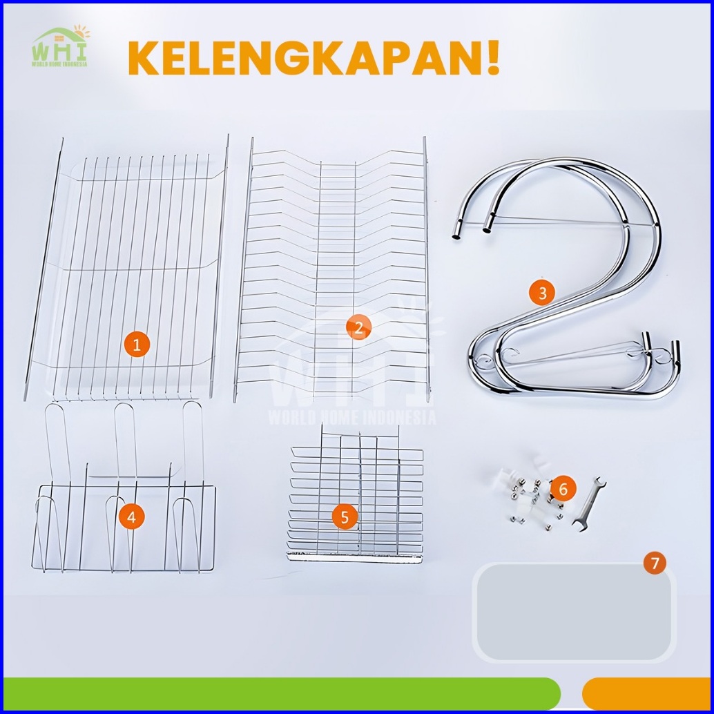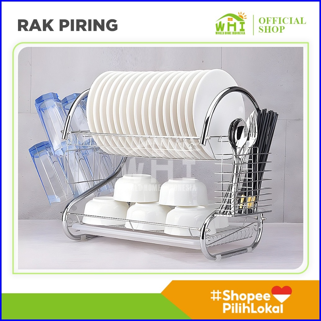World Home Rak Piring Stainlees 2 Tingkat Rak Piring Minimalis Rak Dapur Stainless Steel Dish Rack