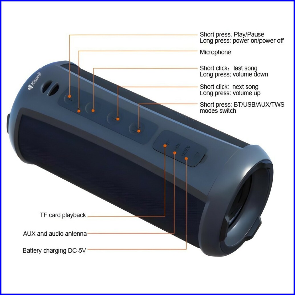 Kisonli Speaker Bluetooth Portable Q5s Dual Bass Support Fm Radio Tf Aux