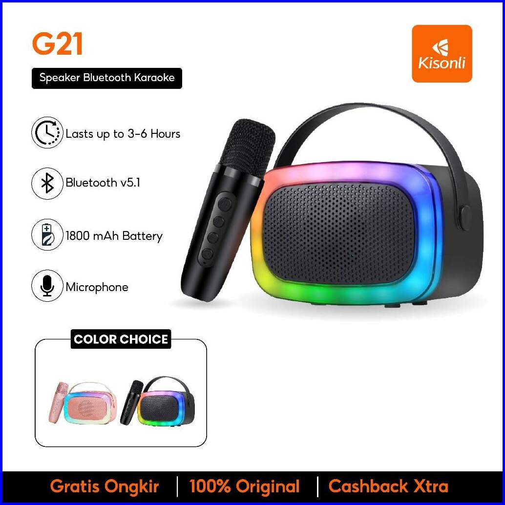 Kisonli Speaker Bluetooth Karaoke G21 Stereo With Microphone Rgb Colorfull Light
