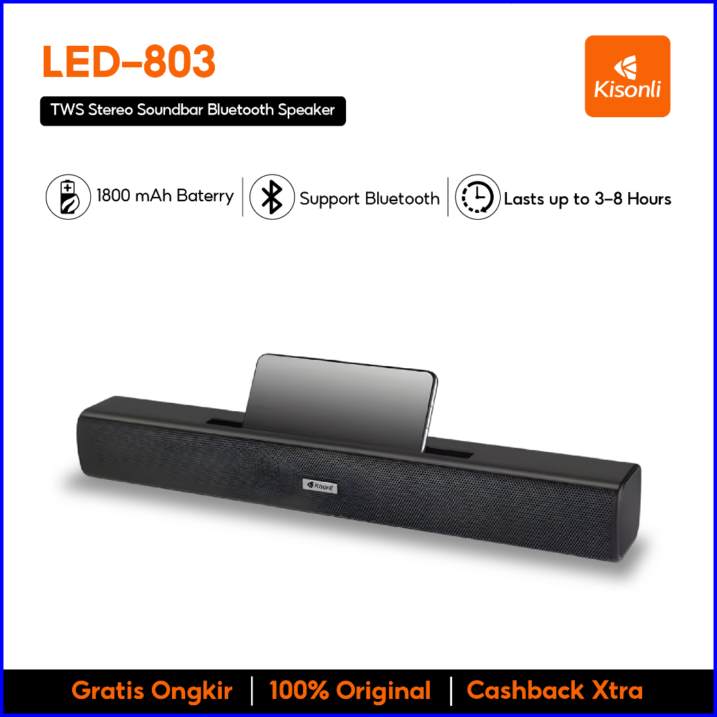 Kisonli Speaker Bluetooth Soundbar Led-803 Tws Stereo With Holder Desing 1800mah Rechargeable