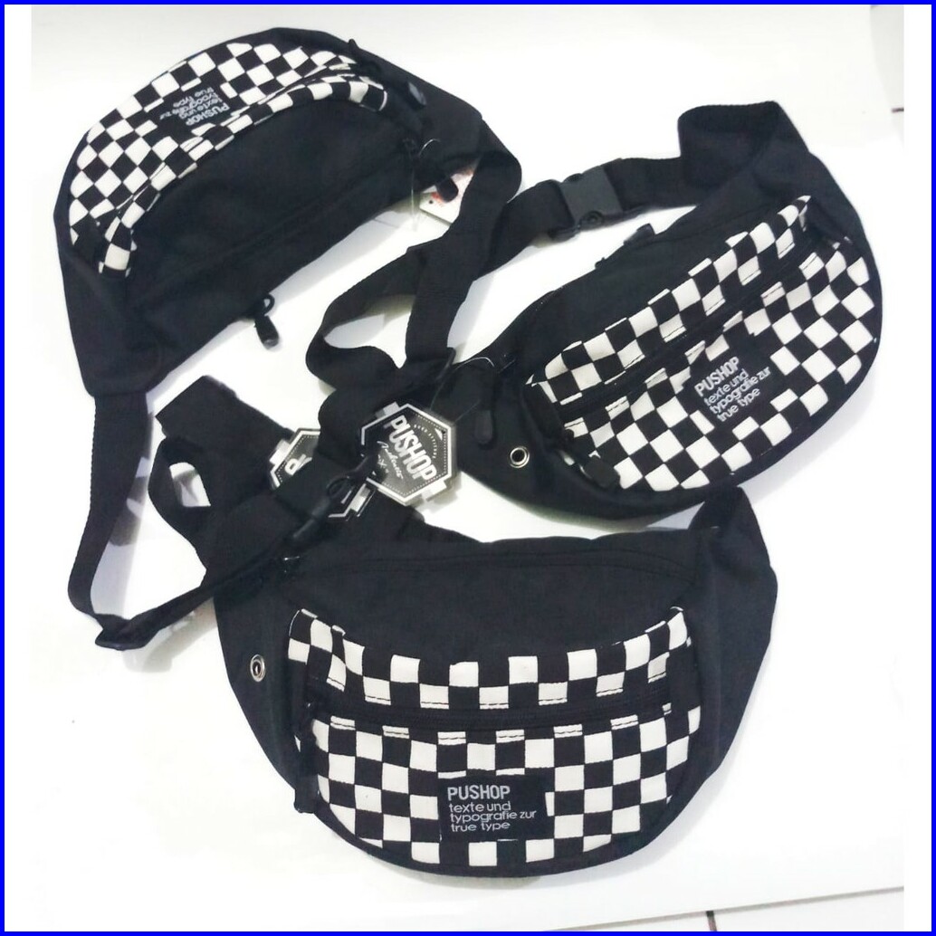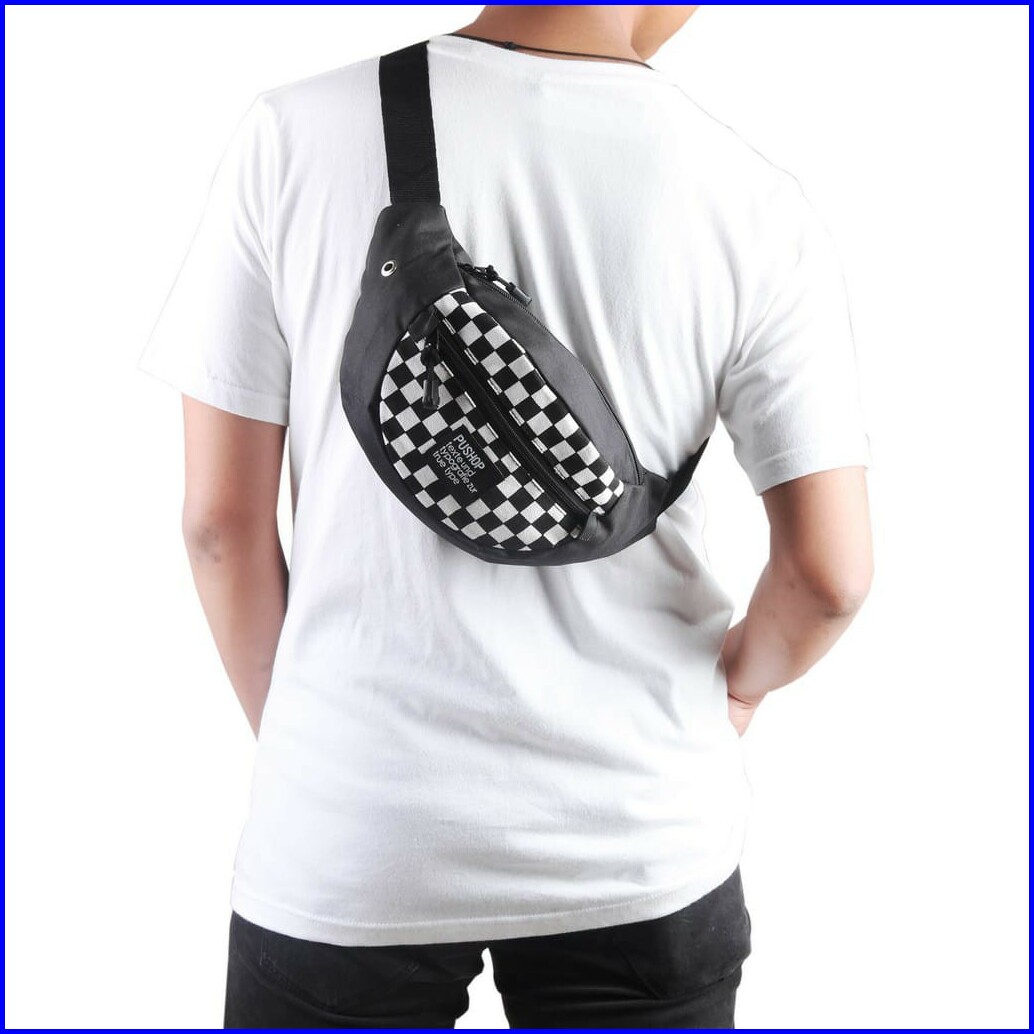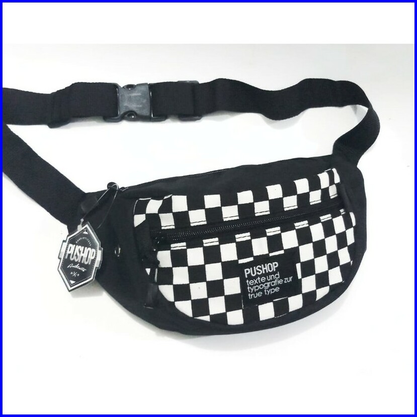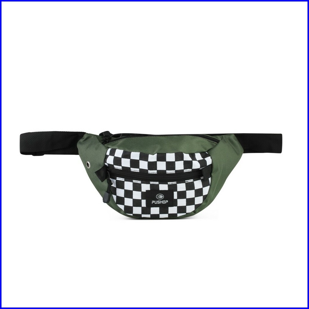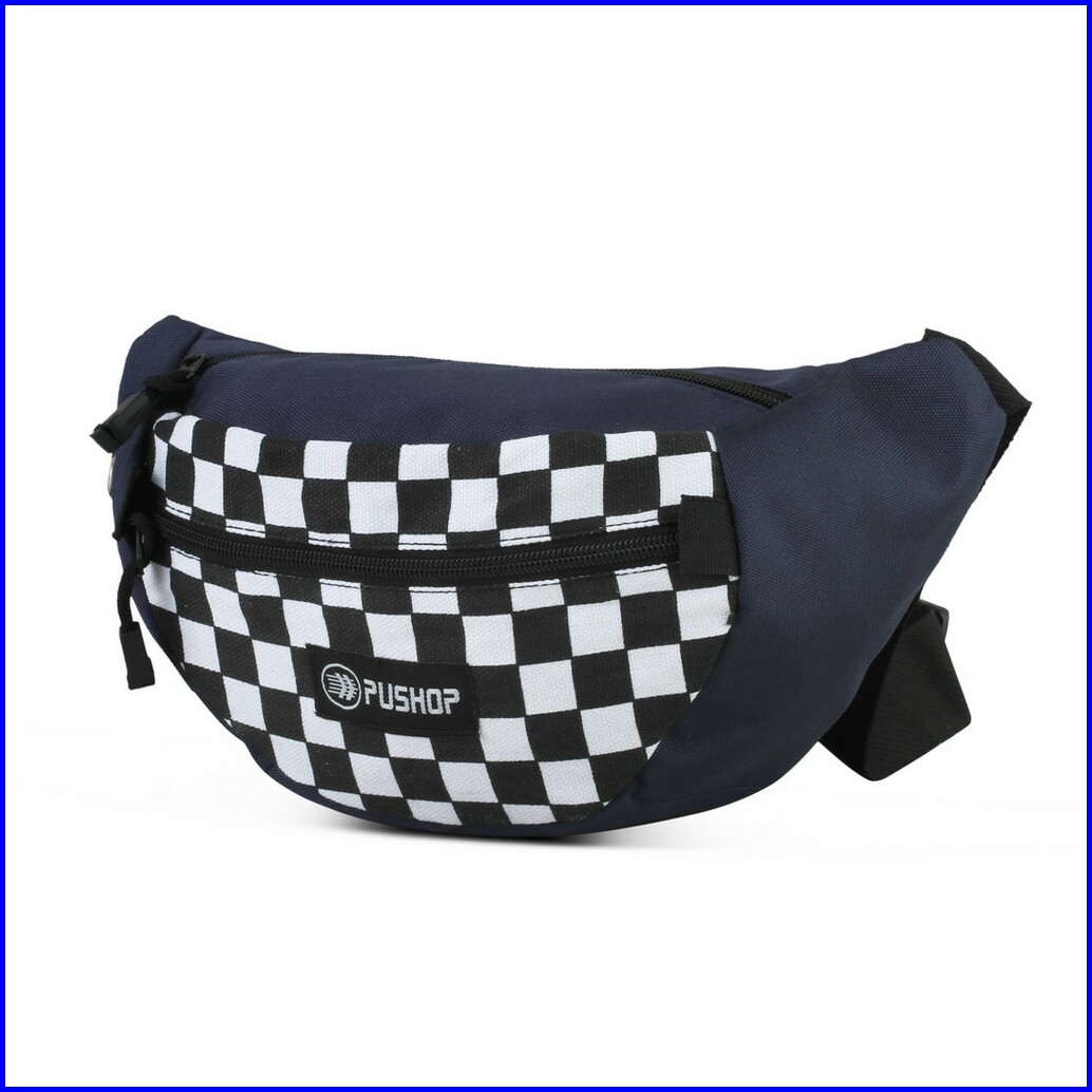 Tas Pinggang Kanvas Pria Catur Pushop Lubang Headset