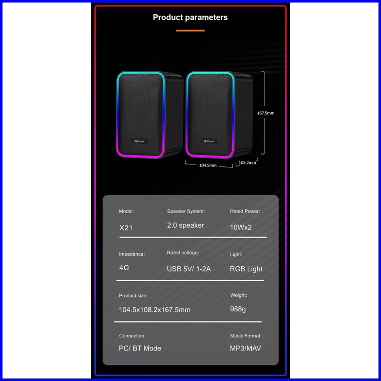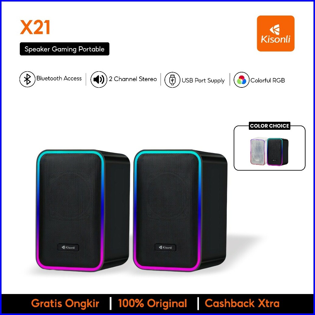 Kisonli Speaker Aktif Pc Gaming 2 Channel X21 Strong Bass With Led Rgb Light