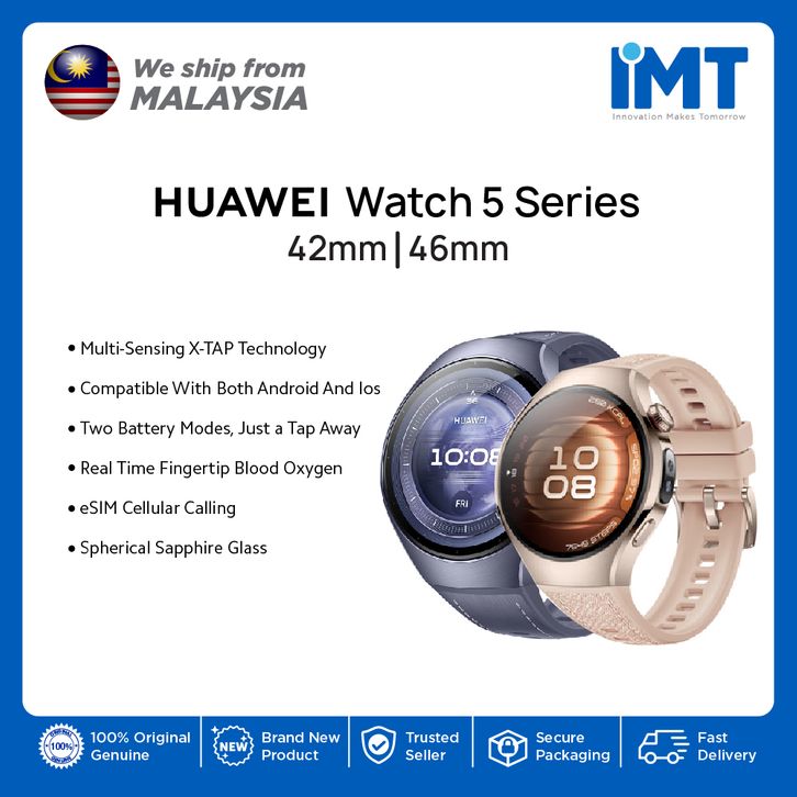 Huawei Watch 5 Smartwatch | Teknologi Multi-Pengesanan X-TAP | Bingkai Keluli Tahan Karat 904L
