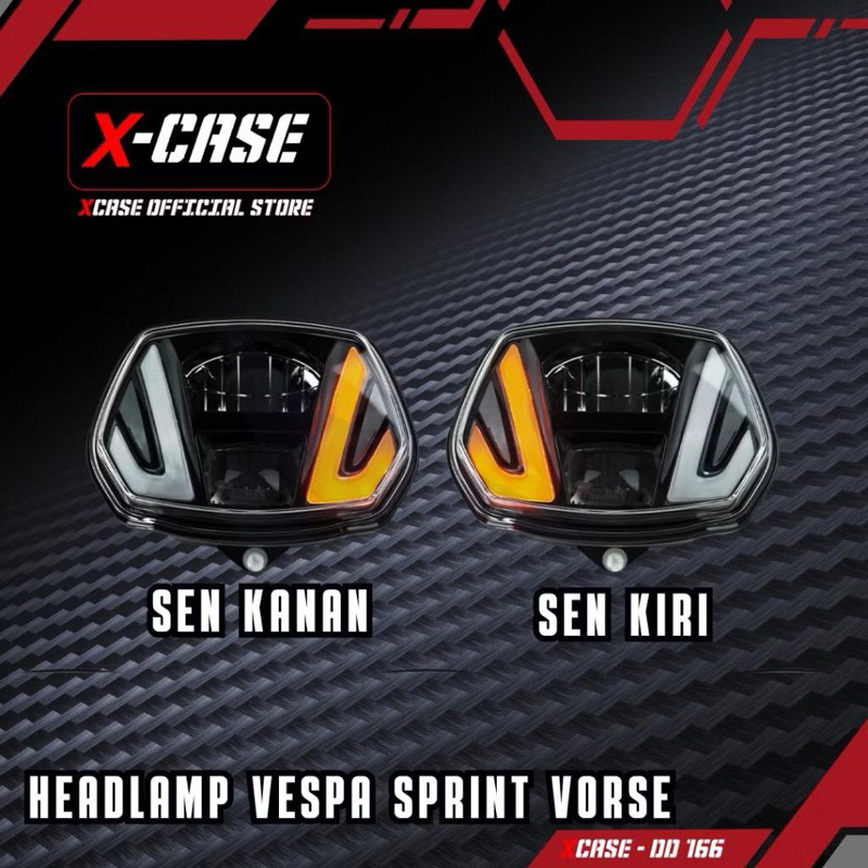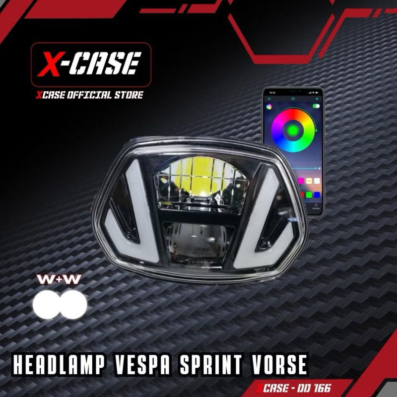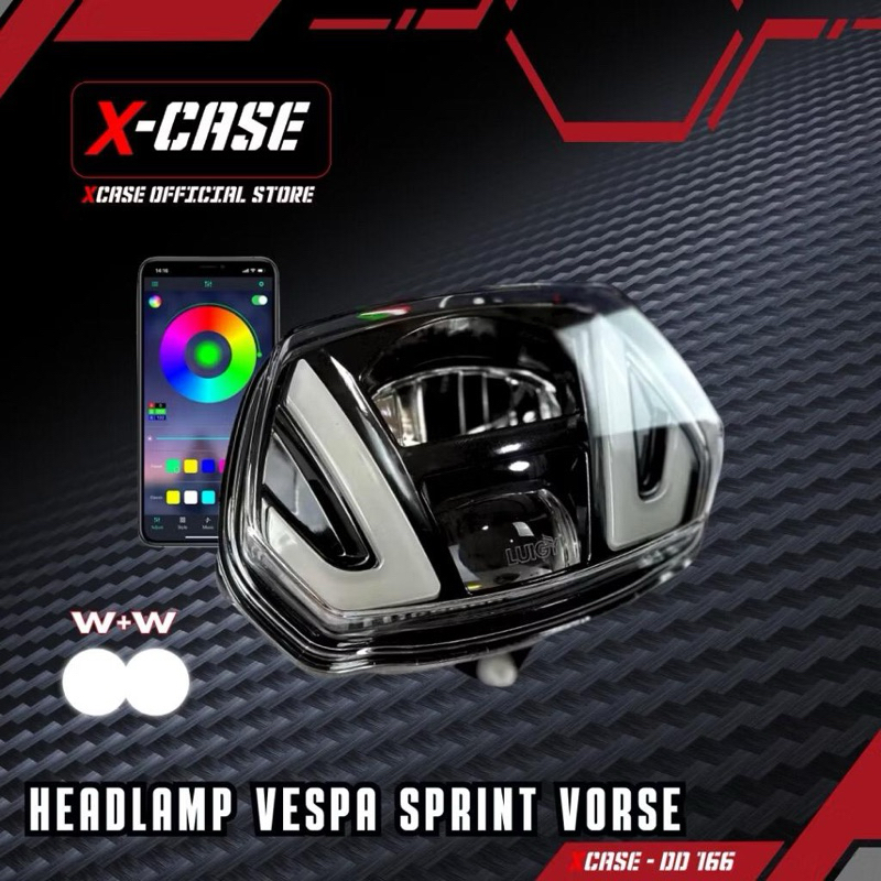 LAMPU DEPAN HEADLAMP X-CASE VESPA SPRINT MODEL VORSE SENJA RGB 200 MODE CONNECT APP SEIN RUNNING KUNING