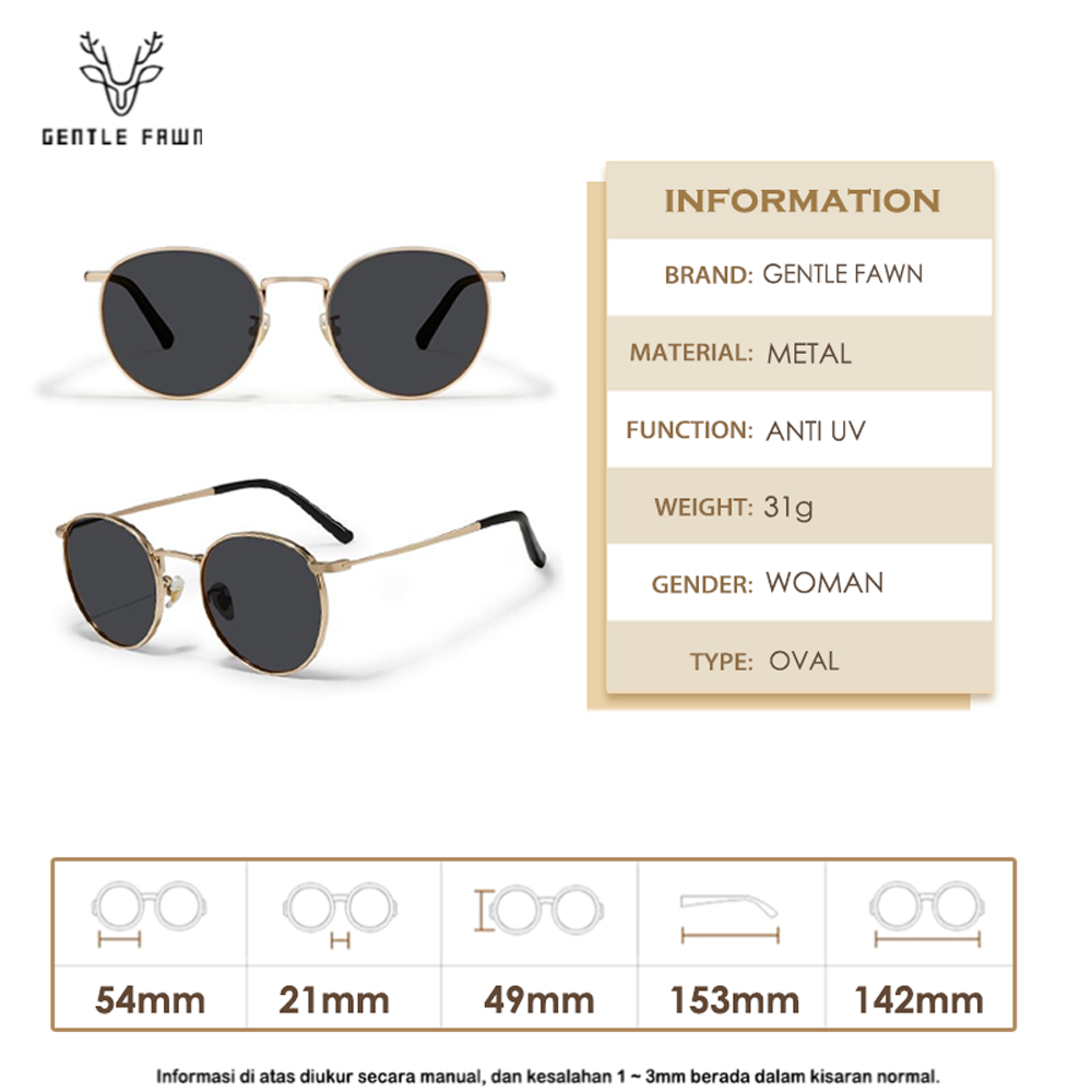Gentle Fawn Kacamata Sunglasses Anti Uv 400 Silau Matahari Style Retro Vintage Fashion Wanita Kekinian Bahan Metal Keren