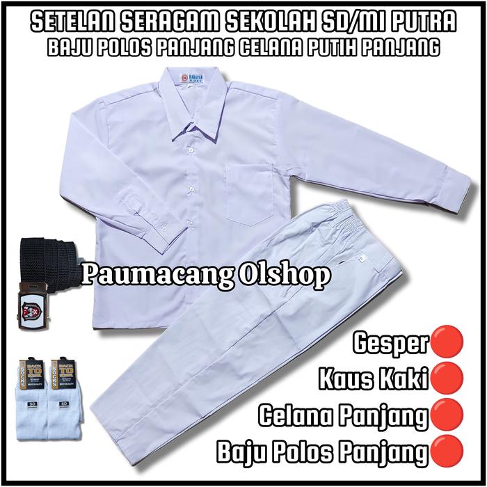 Setelan Seragam Sekolah SD/MI Putih Putih Polos Anak Putra Baju Putih Polos Lengan Panjang Celana