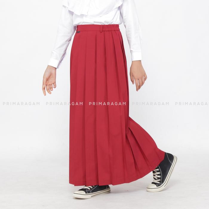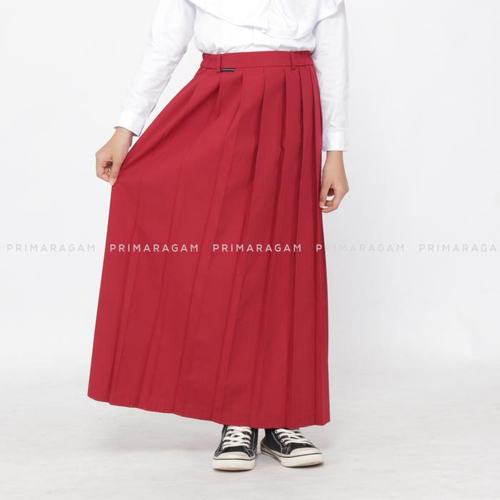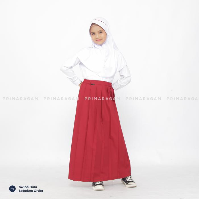 Primaragam Rok Sekolah Sd Panjang Merah Rempel Lipit Atas Ban Pinggang Karet Seragam Sekolah SD SMP