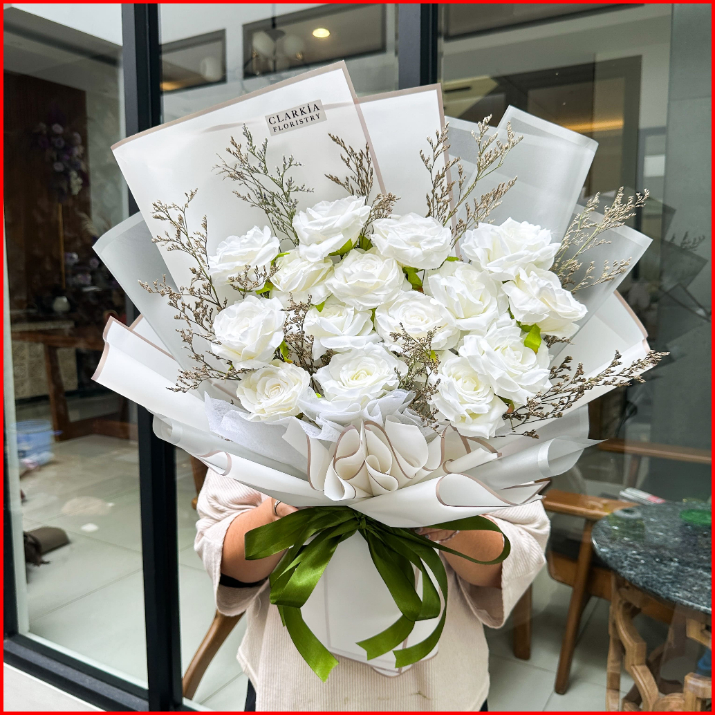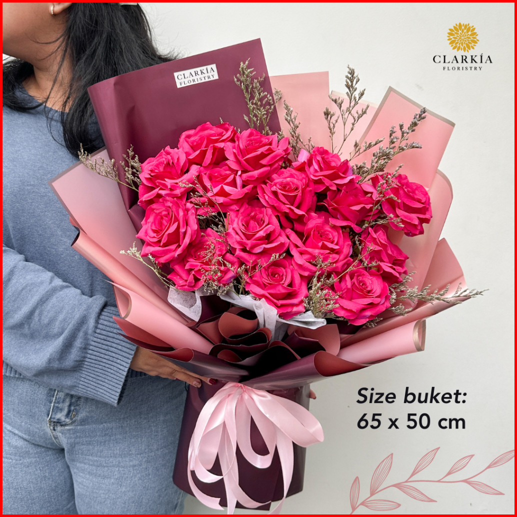 Clarkia Floristry Ori Artificial 15 Stem Rose Flowers Bouquet Bunga Buatan Buket Mawar 15pcs Tangkai Hadiah Kado Gift Wi
