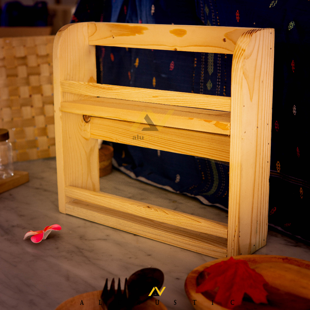 TEMPAT BUMBU KAYU 2 TINGKAT 10 TOPLES / RAK KAYU 2 SUSUN / RAK GANTUNG / TEMPAT BUMBU SERBAGUNA PERABOT