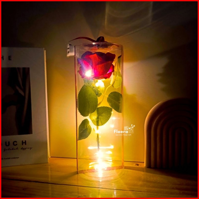 Buket Mawar Single Rose Dengan Lampu Hadiah Wisuda Valentine