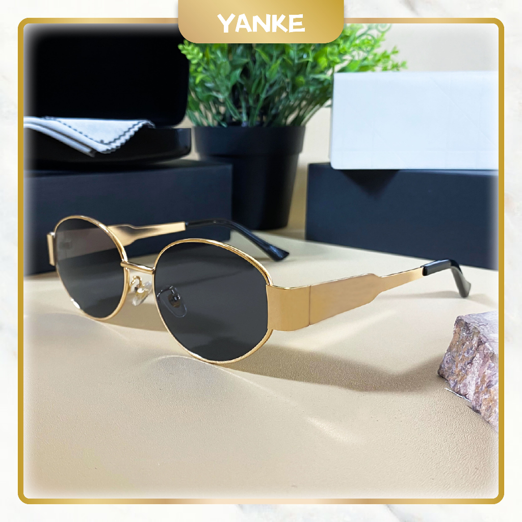 [Paket Kotak & Lap] Kacamata Hitam mata Kucing Bingkai Logam Lisa yang Sama untuk Pria dan Wanita Kacamata Fashion 2301