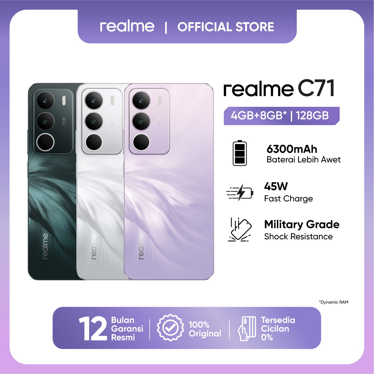 HP realme C71 4GB+8GB |128GB (6300 Baterai | 45W Fast Charge | Military Grade Shock Resistance | NFC