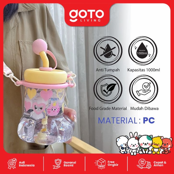 Goto Luneko Botol Minum Anak Perempuan Water Bottle Sedotan Lucu