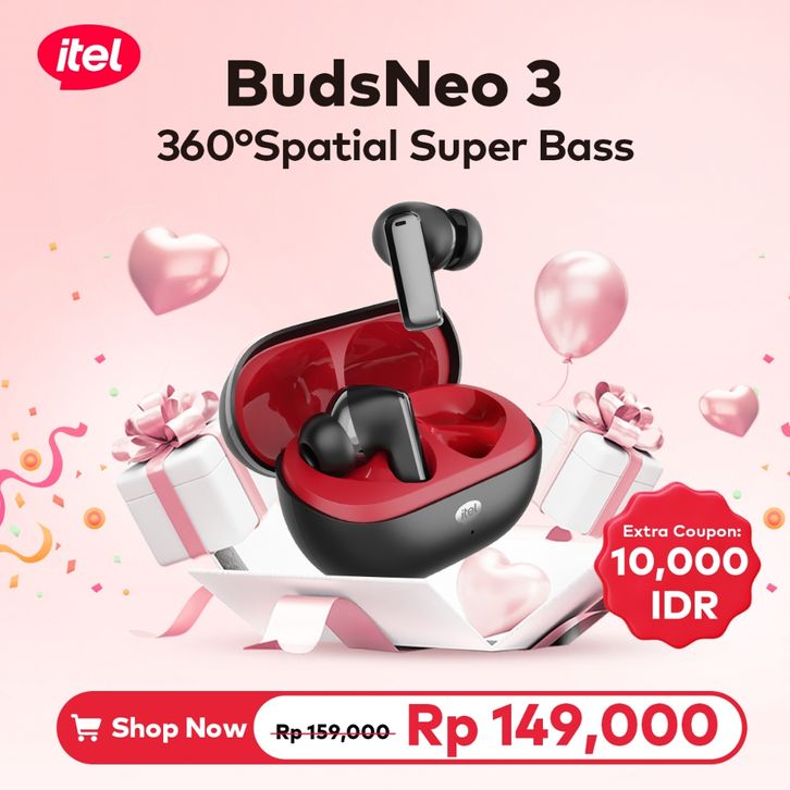itel BudsNeo3 TWS Earbuds Headset Bluetooth V5.4 Super Bass 360° Spatial Audio Nikmati Komunikasi Jernih & Gaming Respo