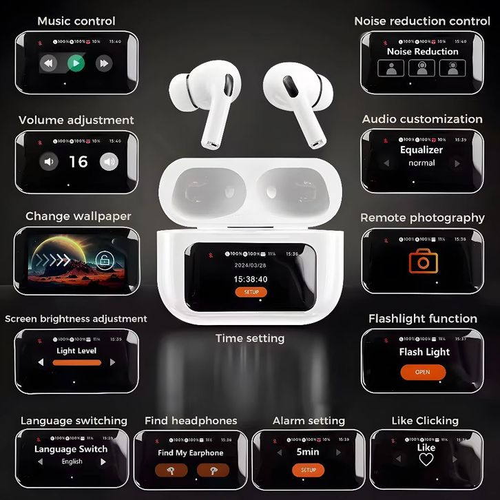 WANKEI LENTIVEN TWS Bluetooth Headset Bass Earphone Wireless V5.4 Smart Screen Active Noise Reduction ANC/ENC