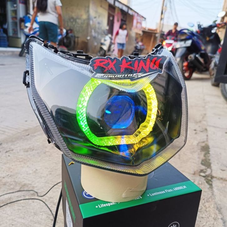 REFLEKTOR LAMPU DEPAN SUPRA X 125FI BILED CRISTAL RGB 4.5INC APLIKASI HP
