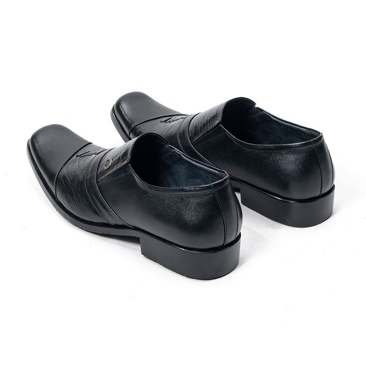 Sepatu Kulit Sepatu Pantofel Pria Kulit Asli Formal Tanpa Tali Warna Hitam
