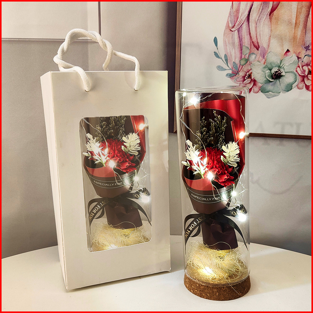 Buket Bunga Dekorasi Artificial Flower Bucket With Led String Carnation Kado Lulusan Wisuda Ulang Tahun