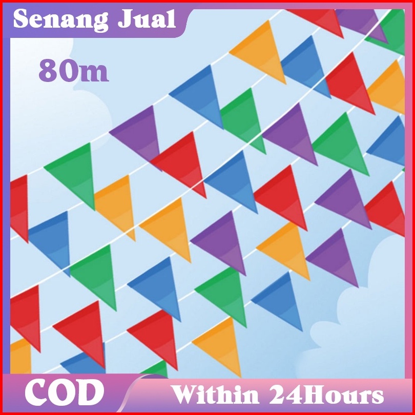 150pcs Bendera Segitiga Warna Warni 80 Meter Bendera Kain Segitiga Bendera Hias Festival