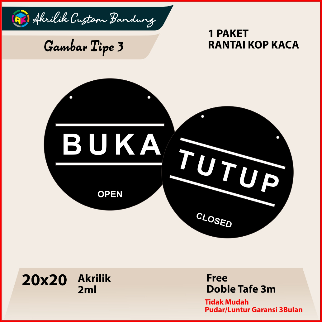 Akrilik Open Close Tipe 3 Acrylic Hitam Signage Cutting Sticker