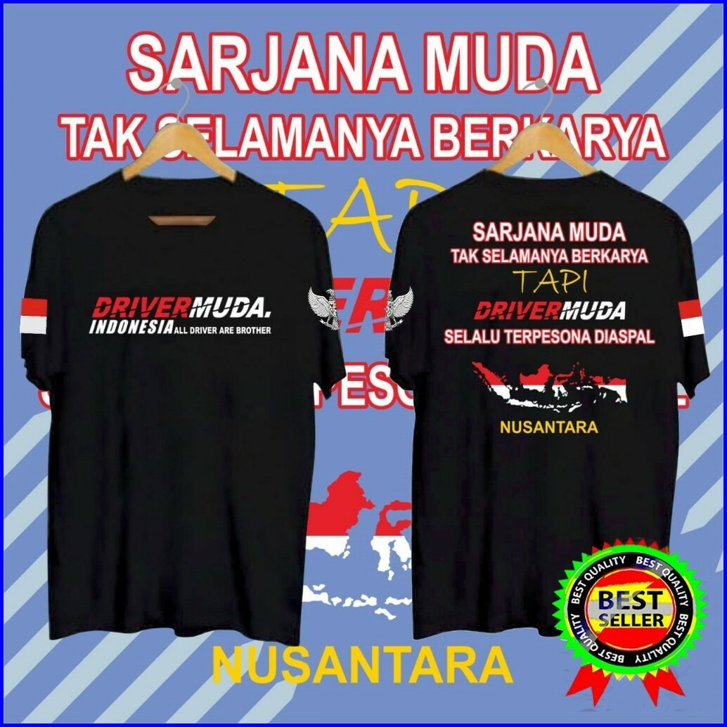 Kaos Pria Driver Muda Indonesia Sarjana Muda Black Simple Dinamis Dan Memberikan Kesan Kasual