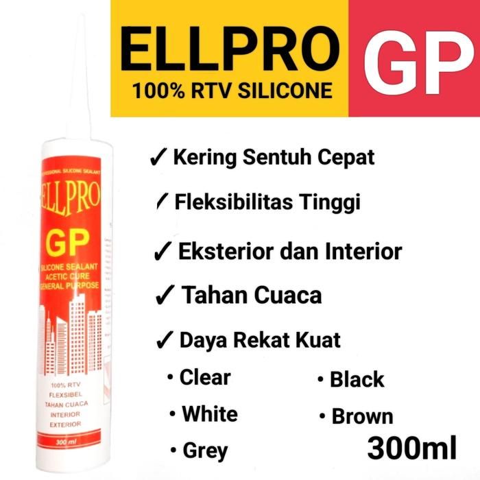 Silicone Sealant/Lem Kaca/Lem Aquarium ELLPRO GP Acetic Cure 300 gram - Clear - Bening