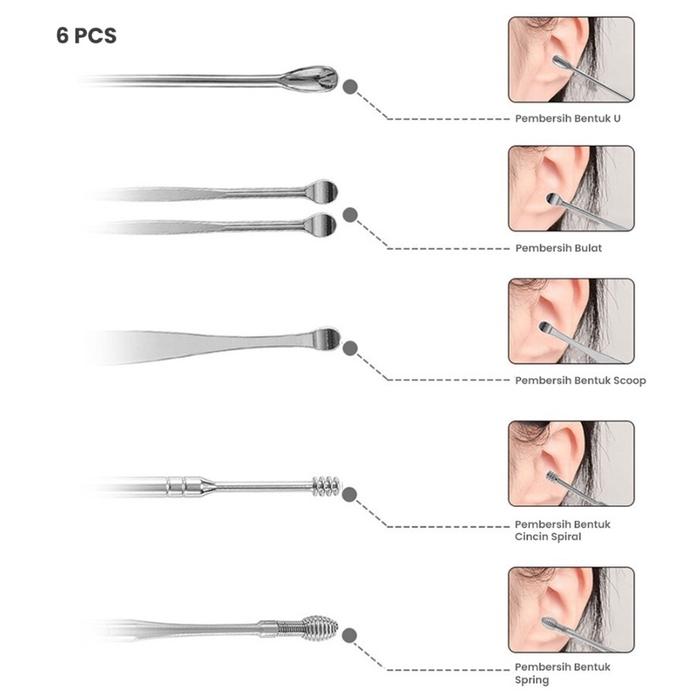 Korek kuping isi 6 + wadah 6in1 ear wax alat pembersih telinga isi 6 cleaner korek kuping 6in1
