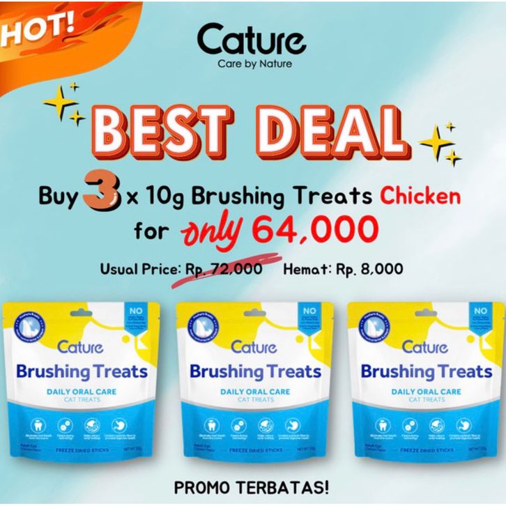 3 x Bundle Cature Oral Care Freeze Dried Treats Chicken Sticks 10gr