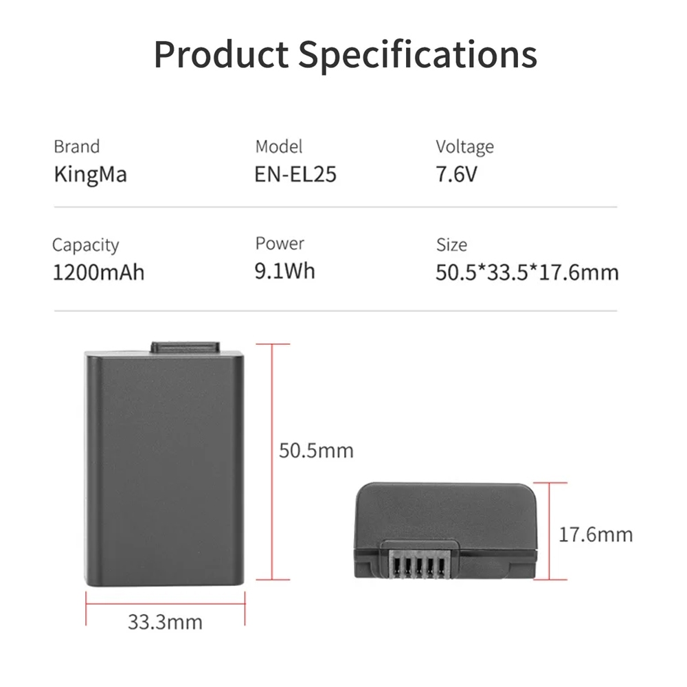 Kingma Battery Replacement for Nikon EN-EL25 - Baterai Kamera Nikon Z30 Z50 ZFC ENEL25 - 1350mAH - Free Battery Case